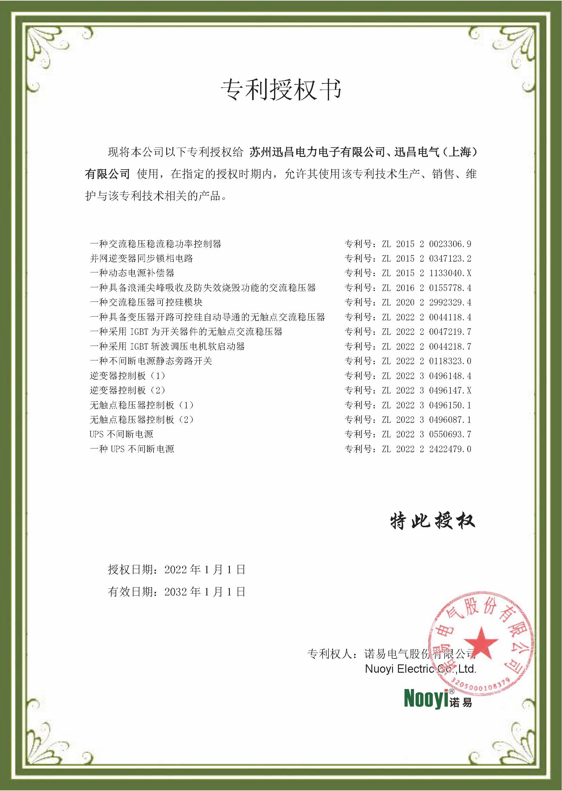 专利授权书