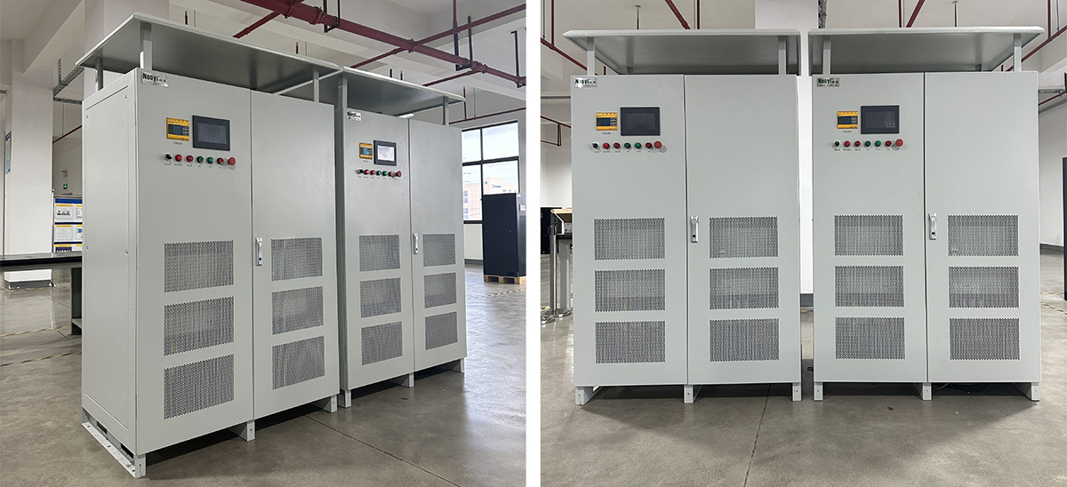 MSFP-中频静变电源采用AC-DC-AC(交流-直流-交流)的方式通过SVPWM(空间矢量脉宽调制)变换将输入50HZ或60HZ电源转换成400HZ(200HZ-600HZ可设定)电源, 以满足不同电压、不同频率的需要。